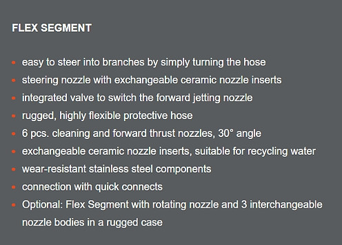 With a range of up to 265 ft (80 meters), the typical areas of application are in pipe cleaning and emergency service companies, in the construction industry, in municipal services, in house and connection inspections also from the main sewer, in renovation work, in the industrial sector and as a problem solver for difficult tasks.